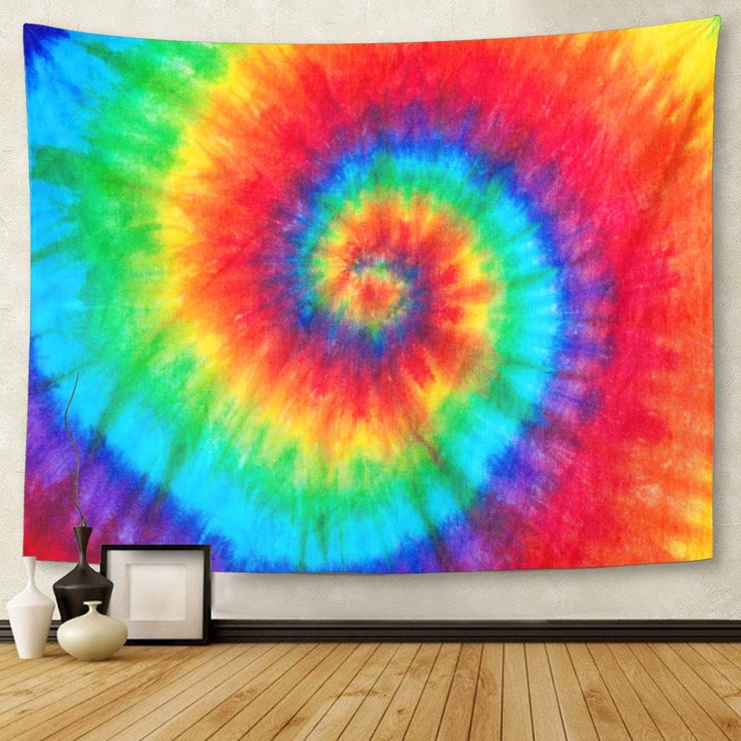 Emvency Tapestry Colorful Rainbow Spiral Tie Dye Pattern Color Dyed Batik Home Decor Wall Hanging For Living Room Bedroom Dorm 60x80 Inches Home Kitchen